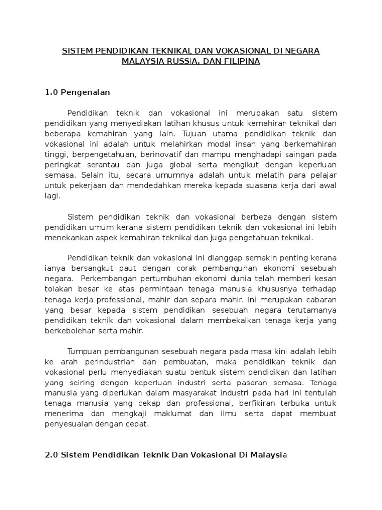 Sistem Pendidikan Teknikal Dan Vokasional Di Negara Malaysia Russia Dan Filipina Pdf